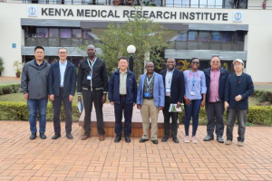 8月1日,代表團(tuán)一行先后訪問肯尼亞醫(yī)學(xué)研究所和肯尼亞技術(shù)大學(xué)。在肯尼亞醫(yī)學(xué)研究所,研究培訓(xùn)和創(chuàng)新主任Jeremiah Gathirawa博士、伙伴關(guān)系與合作主任James Kuria博士對代表團(tuán)一行表示熱烈歡迎。Jeremiah Gathirawa主任和姜明所長對各自單位的發(fā)展定位、科研領(lǐng)域、研究平臺(tái)、國際合作等情況進(jìn)行了介紹。雙方期待進(jìn)一步建立合作伙伴關(guān)系,達(dá)成相關(guān)領(lǐng)域的具體合作意向,并對下一步簽署合作備忘錄達(dá)成了初步意向。在肯尼亞技術(shù)大學(xué),代表團(tuán)與生物與生命科學(xué)學(xué)院院長Patrick Okanya教授進(jìn)行了座談交流,雙方圍繞合作備忘錄簽署、中非聯(lián)合實(shí)驗(yàn)平臺(tái)申報(bào)、博士后互訪合作、研究生聯(lián)合培養(yǎng)等事宜達(dá)成了合作意向。